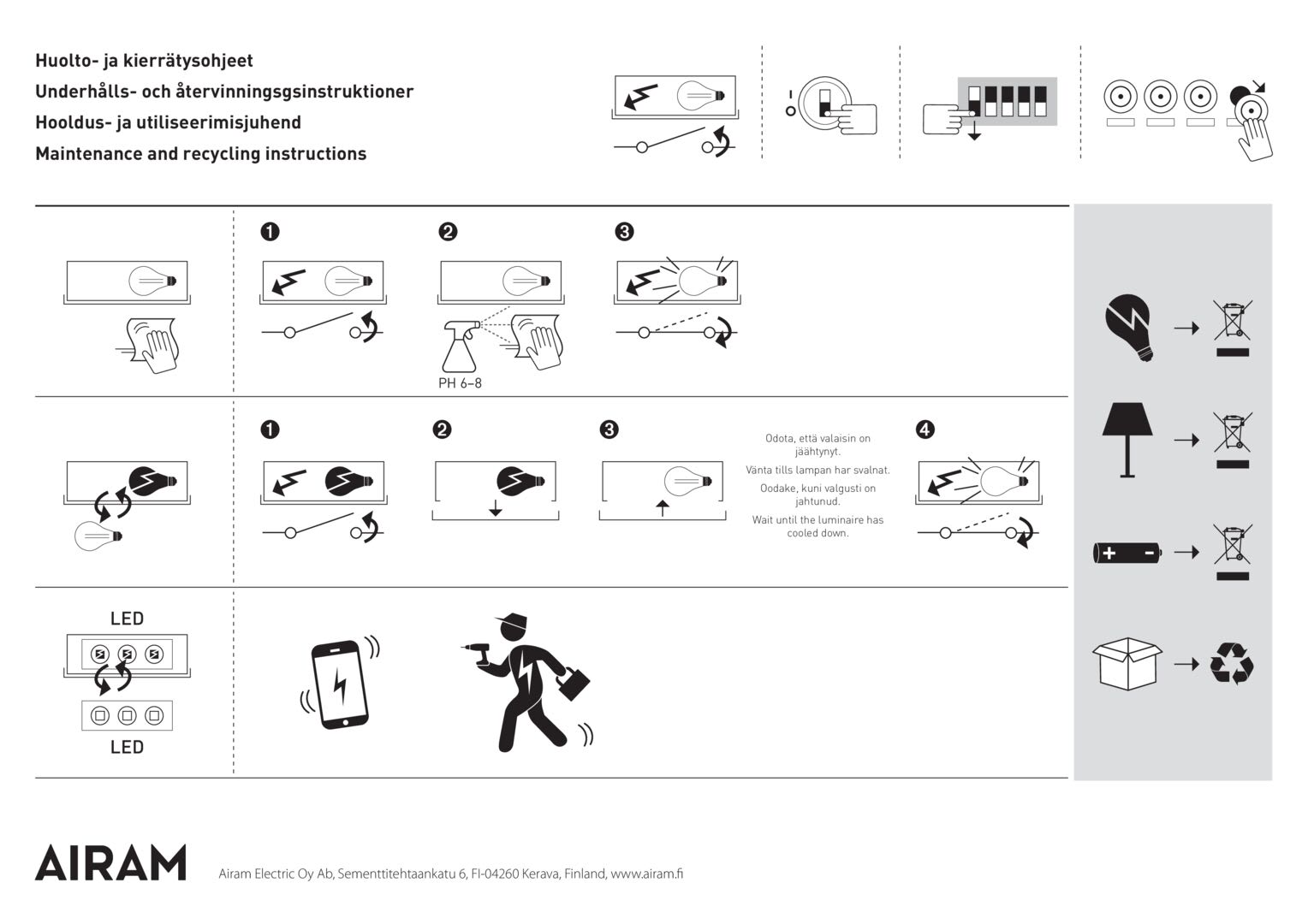 - On/off, Dali sekä RA/MS-, PIR/MS-mallit (25 W / 36 W).