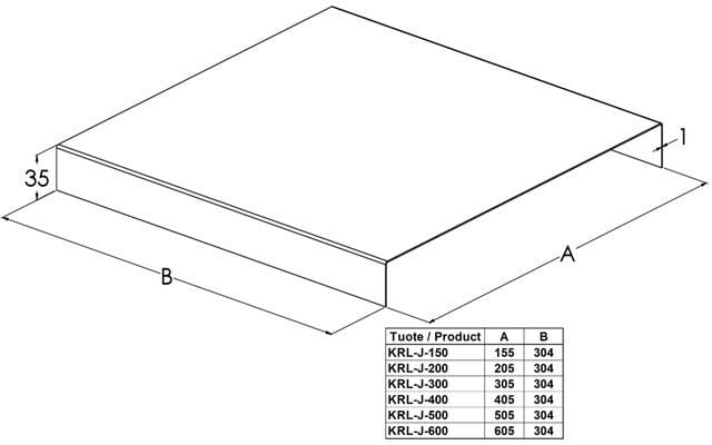 Kannen jatkokappale 500 mm leveään tikashyllyn kanteen, terästä, sinkitty, korroosioluokka C1-C2
