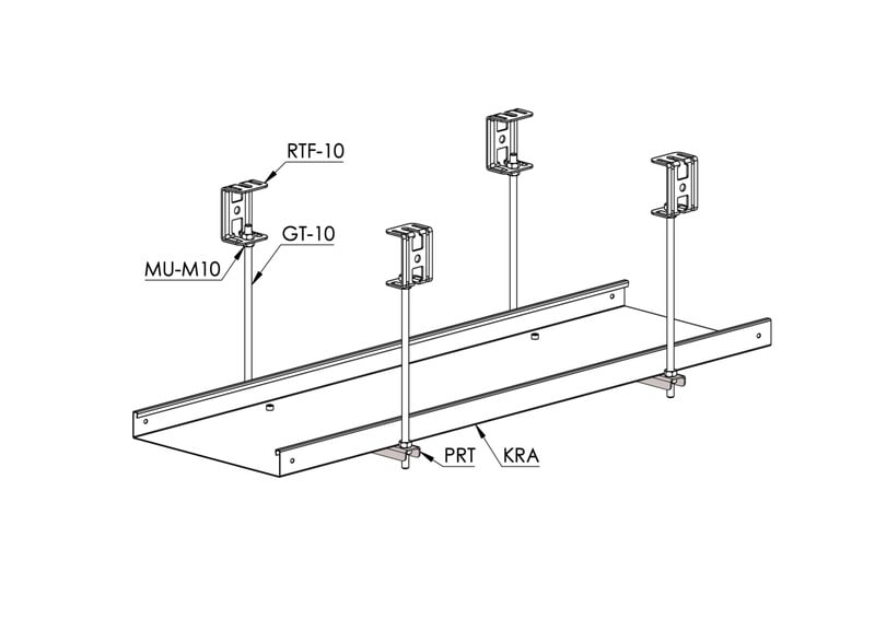 Porttikannakkeella PRT tehdään portti- sekä keskikannatus tikashyllyille KS20, KS60, KSE80, KS80, KS80 SP2.0 ja KSF80 kierretangoilla GT-10.