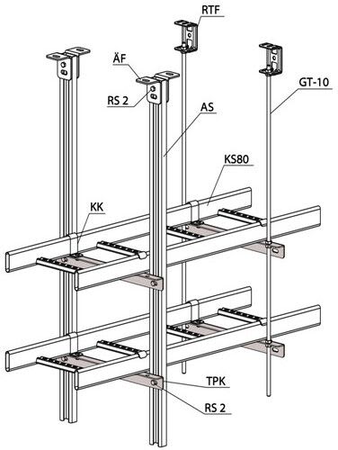 Porttikannakkeella TPK tehdään porttikannatus tikashyllyille KS20, KS60, KSE80, KS80, KS80 SP2.0 ja KSF80 kierretangoilla GT-10 tai asennuskiskoilla AS, ASR, ASR-L ja ASR-P.
