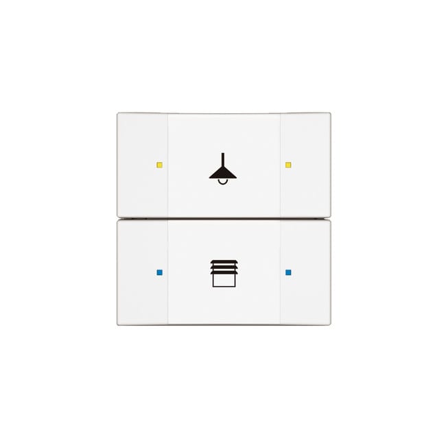 2/4-osainen painike, joka lähettää sähkeen väylälle, LED-idikointi. Asennetaan KNX-väyläliityntäyksikköön 6120/12/4-101 tai 6120/13. Peitelevy ei sisälly toimitukseen.
