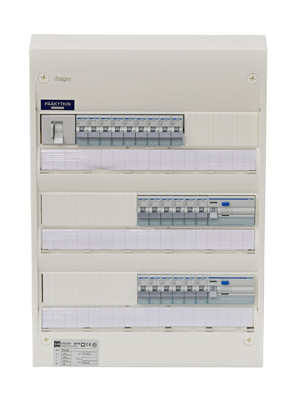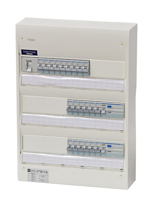 Ryhmäkeskus IP30. Pinta-asennukseen. Kotelo polystyreeniä. Nimellisvirta35A. Johdonsuojakatkaisijoita 21 kpl. vikavirtasuojakytkimiä 2 kpl(4-nap. 30mA 25A). Ryhmäkeskus IP30. Pinta-asennukseen. Kotelo polystyreeniä. Nimellisvirta 35A. Johdonsuojakatkaisijoita 21 kpl, vikavirtasuojakytkimiä 2 kpl (4-nap. 30mA 25A). Johdonsuojakatkaisijat ja N- ja PE-liittimet jousiliittimin. Johdonsuojakatkaisijasta mahdollista lähteä kahdella 1,5-4 mm2 johtimella. Ovi tilattava erikseen (3425679).