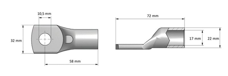 PK Cu-putkikaapelikenkä 120mm2 M10 PK-putkikaapelikengät
