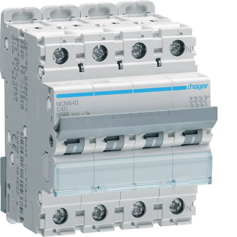 HAGER - Johdonsuojakatkaisija 40A 10kA - NCN640 3L+N C-40A 10kA 4M