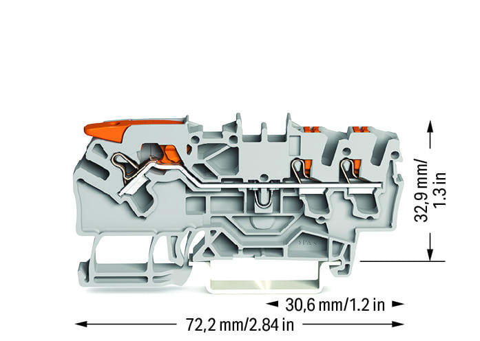 Vivulla ja painonapilla, 0.25-2.5 mm, ilman pääteholkkia 4 mm2, 800 V, 24 A, 5.2 mm