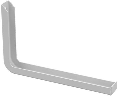 Seinäkannake levyhyllyyn ja lankahyllyyn, terästä, valkoinen Seinäkannakkeella YPK tehdään levyhyllyjen KRA ja KRB kannatukset, joissa levyhyllyn alapuolella on rajoitetusti tilaa.