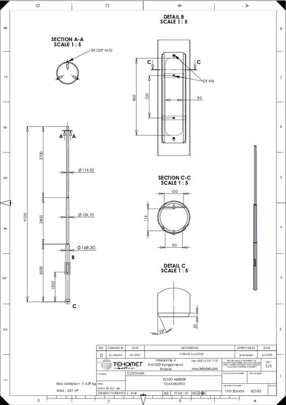 TEHOMET - Olakepylväsrunko - B210 olakepylväsrunko