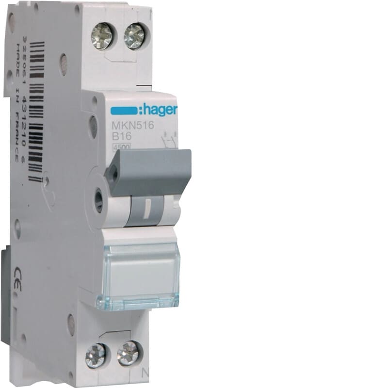 HAGER - Johdonsuojakatk.1+N B 6kA - MKN516 16A 1MOD