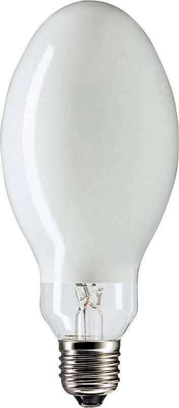 Suurpainenatriumlamppu, jossa on opaali ellipsinmuotoinen ulkokupu, hyvä valontuotto ja pitkä luotettava käyttöikä.