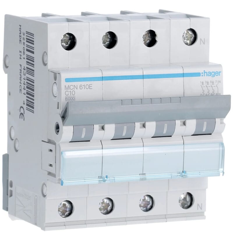 HAGER - Johdonsuojakatkaisija 10A 6kA - MCN610 3+N 10A C-käy 6kA