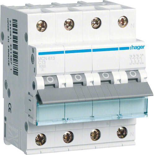 HAGER - Johdonsuojakatkaisija 13A 6kA - MCN613 3+N 13A C-käy 6kA