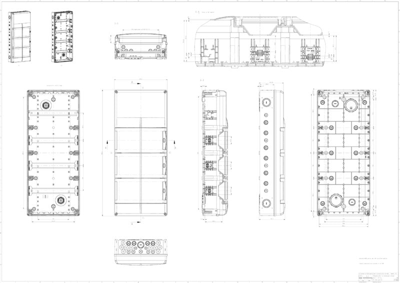 Moduulikotelo - teollisuusmalli -, 3-rivinen, 42 moduulia, DIN-asennuskiskojen väli 150 mm, integroiduilla tuuletusventtiileillä kondenssiveden muodostumisen vähentämiseksi, ylhäällä kalvotiivisteet valmiina, DIN-peitelevy ja merkintäliuska, ylimääräisillä kaksoiskalvotiivisteillä ja muilla tarvikkeilla.
