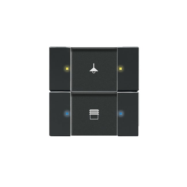 2/4-osainen painike, joka lähettää sähkeen väylälle, LED-idikointi. Asennetaan KNX-väyläliityntäyksikköön 6120/12/4-101 tai 6120/13. Peitelevy ei sisälly toimitukseen.