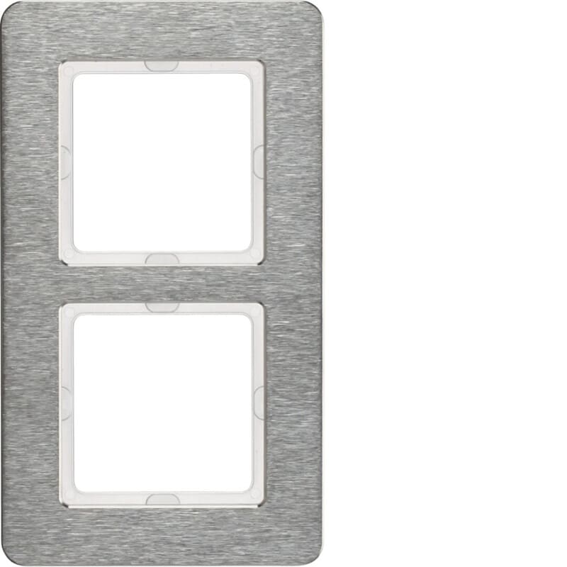 Peitelevy Berker Q.7 2-osainen. ruostumaston teräs harjattu. pysty Peitelevy 2-osainen Berker Q.7, aitomateriaalipinta ruostumattomasta teräksestä pinnan pystyharjauskuviolla ja väritön pohjalevy halogeenittomasta thermoplast-muovista