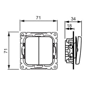 Kytkin jousikiinnitteisellä vivulla ja jousiliittimin. Liittimiin voi kytkeä max 2 johdinta ja ne on hyväksytty ML ja MK johtimille.