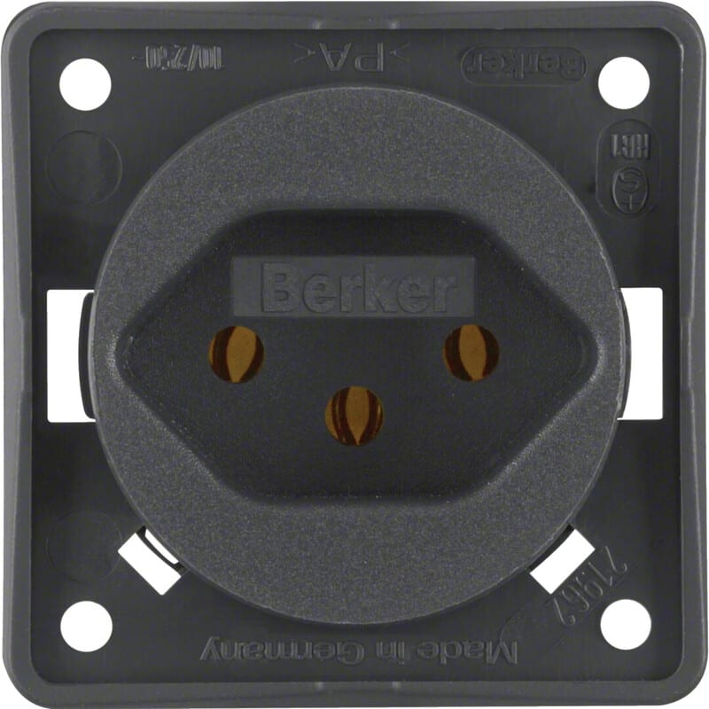 Pistorasia maadoituskoskettimella SVEITSI tyyppi 13 antrasiitti matta Pistorasia maadoituskoskettimella SVEITSI tyyppi 13 - ruuviliittimet Nimellisjännite 250 VAC Nimellisvirta 10 A Ei sovellu kiinnitykseen kiristysrenkaalla! Kytkentäliittimet IEC 60884-1 mukaan ? 2-napainen + maadoitus