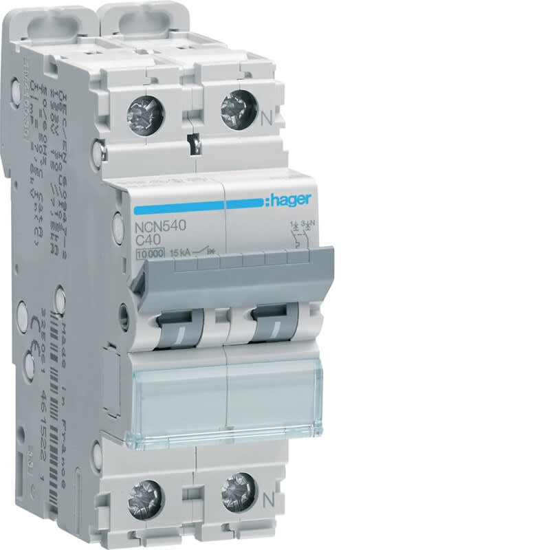 HAGER - Johdonsuojakatkaisija 40A 10kA - NCN540 1L+N C-40A 10kA 2M