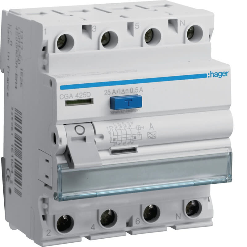 HAGER - Vikavirtasuojakytkin A-tyyppi - CGA425D 500mA/4x25