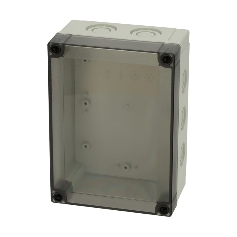 MNX PCM polykarbonaattikotelo, 180x130x75, metriset läpilyöntiaihiot, savunharmaa läpinäkyvä kansi, alaosa TPE-tiivisteellä, 4 kpl ruuvit asennuslevylle/DIN-kiskolle, 4 kpl polyamidi kansiruuvia, IP66/67, IK08 FIBOX MNX PCM polykarbonaattiasennuskotelot metrisillä läpivientiaihioilla