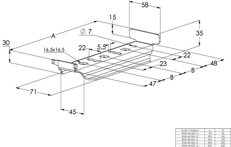 Soveltuvan kaapelitiejärjestelmän leveys: