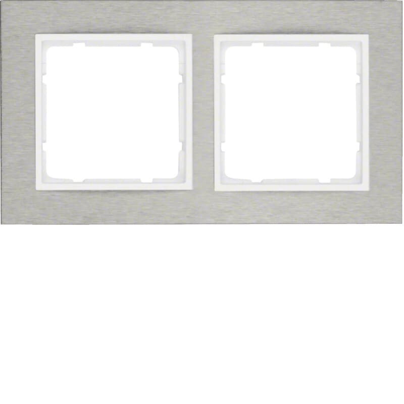 Peitelevy Hager B.7 2os. 95mm vaakaharjattu RST/puhtaanvalkoinen Peitelevy Berker B.7, 2-osainen. Pintamateriaali ruostumattomasta teräksestä vaakaharjatulla pinnalla ja puhtaanvalkoinen pohjalevy halogeenittomasta thermoplast-muovista. Käyttö Berker S.1 -kalustesarjan valkoisella 55x55 keskiölevyllä varustettujen kojeiden kanssa.