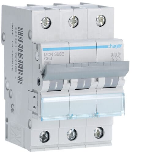 HAGER - Johdonsuojakatk.3-nap C 6kA - MCN363E 63A