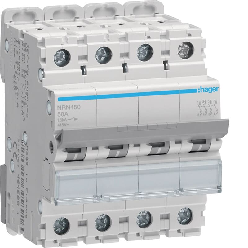 HAGER - Johdonsuojakatkaisija 4x50A 15kA - NRN450 4x50A C-käy 15kA