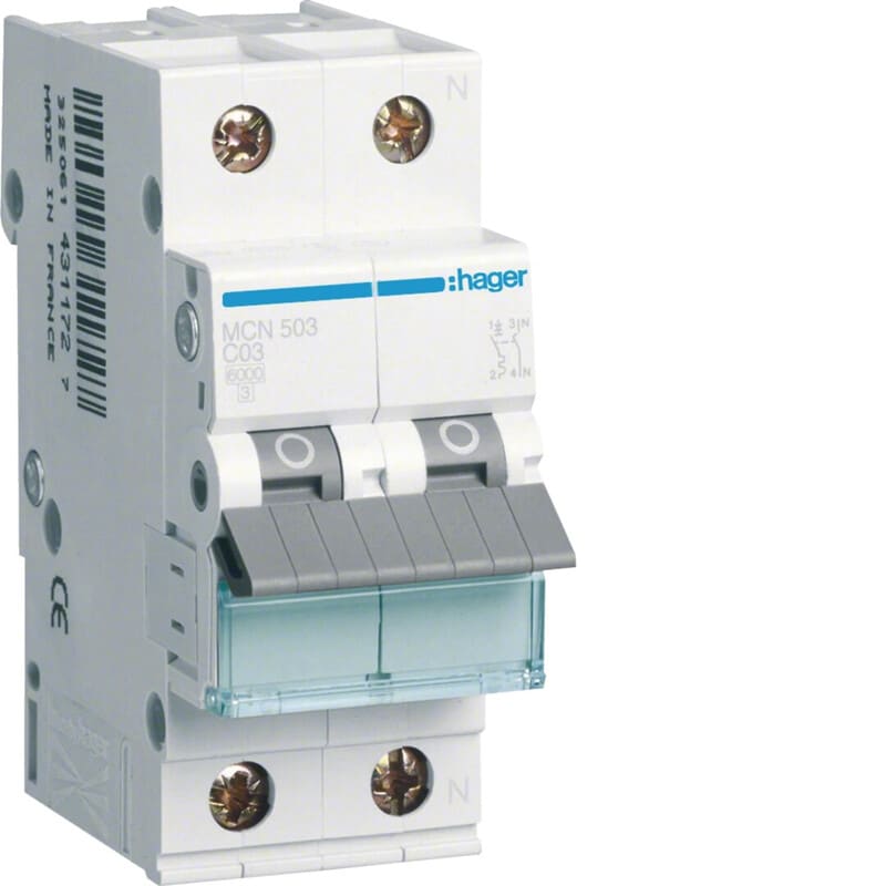 HAGER - Johdonsuojakatkaisija 3A 6kA - MCN503 1+N 3A C-käy 6kA