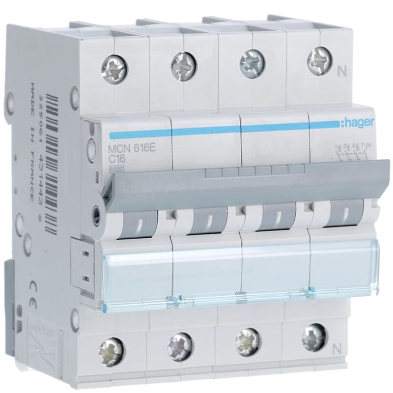 HAGER - Johdonsuojakatkaisija 16A 6kA - MCN616 3+N 16A C-käy 6kA