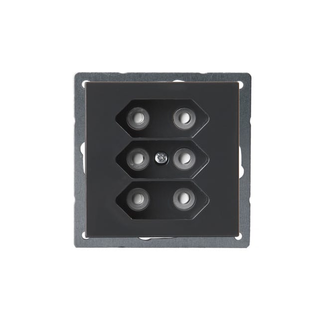 3-osainen Euro pistorasia keskiölevyllä. Pistorasiassa on liittimet 0- ja N-johtimille ja niihin voi kytkeä max 4 johtoa (haaroitusmahdollisuus). Lisäksi rungossa on 2-lisäliitintä joihin voi kytkeä kumpaankin 2 johtoa. Liittimet on hyväksytty ML ja MK johtimille. Pistorasian runko on kosketussuojainen ilman peitelevyä.