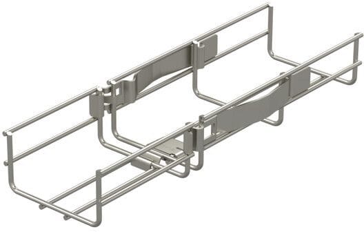 Jatkokappaleella WMT SC1 tehdään ruuviton pikajatko ilman työkaluja 70-200 mm leveisiin lankahyllyihin WMT-50, WMT-100 ja WMT-150. WMT SC1 asennetaan lankahyllyn pohjalle.