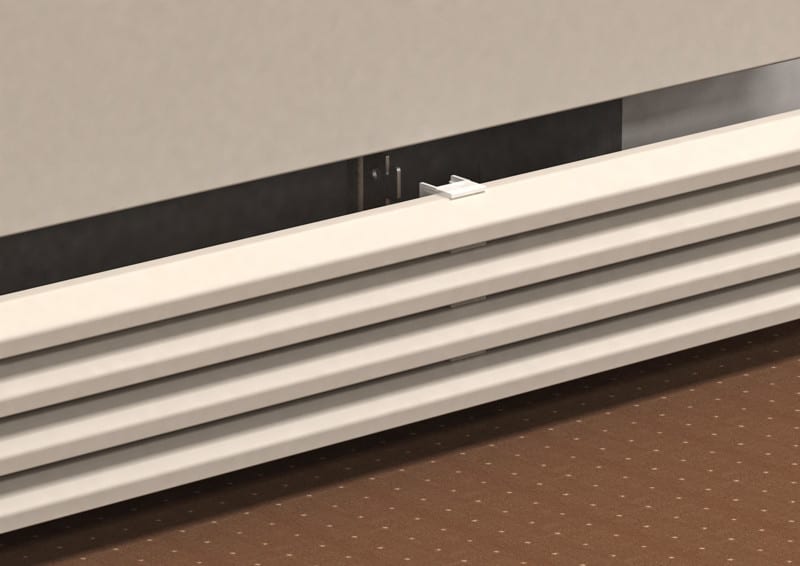 Vaakasuora peitesälepidin ohjausurilla peitesäleiden kiinnittämiseen seinäkiinnikkeisiin BKN. Peitesälepidin kiinnitetään kiinnitysjousella SP3 kiinnikkeeseen.