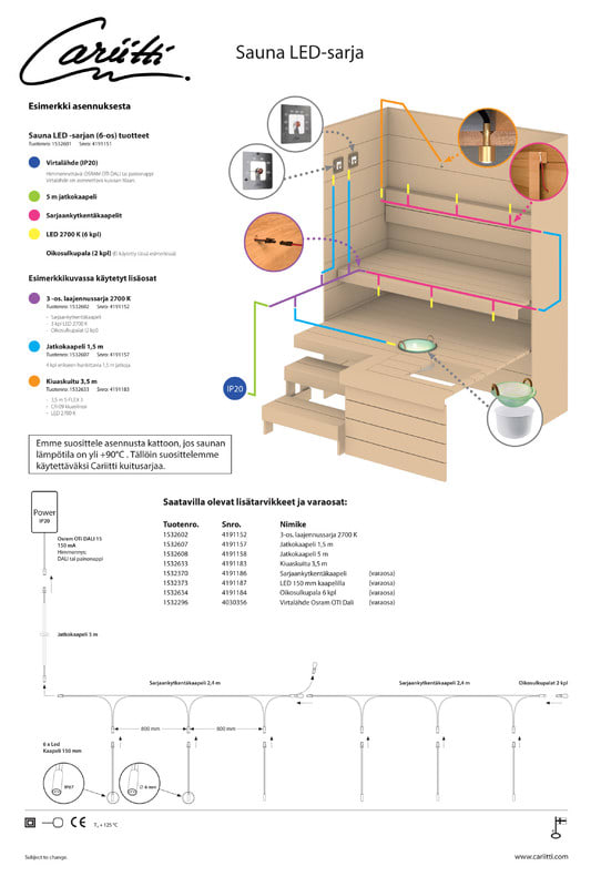 CARIITTI - Valokuituvalaisin - LED SARJAN KIUASKUITU 2700K 5M