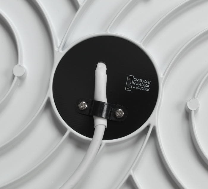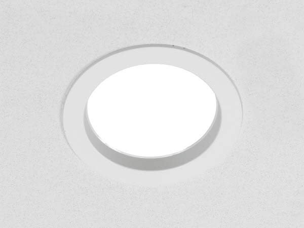 Valkoinen upotuskehys yhdistää tyylikkäästi valaisimen ja kattopinnan.