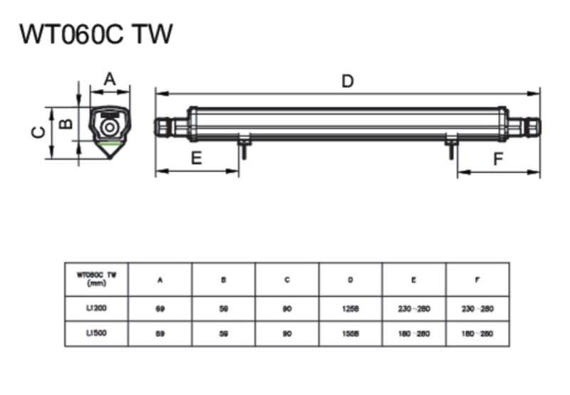 - Valaisimen pituus: 1200 mm