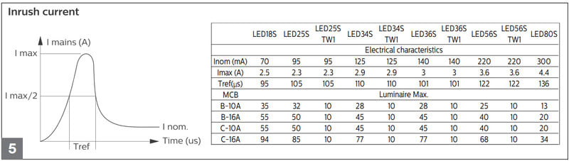 Enimmäismäärä valaisimia, johdonsuojakatkaisija C16: