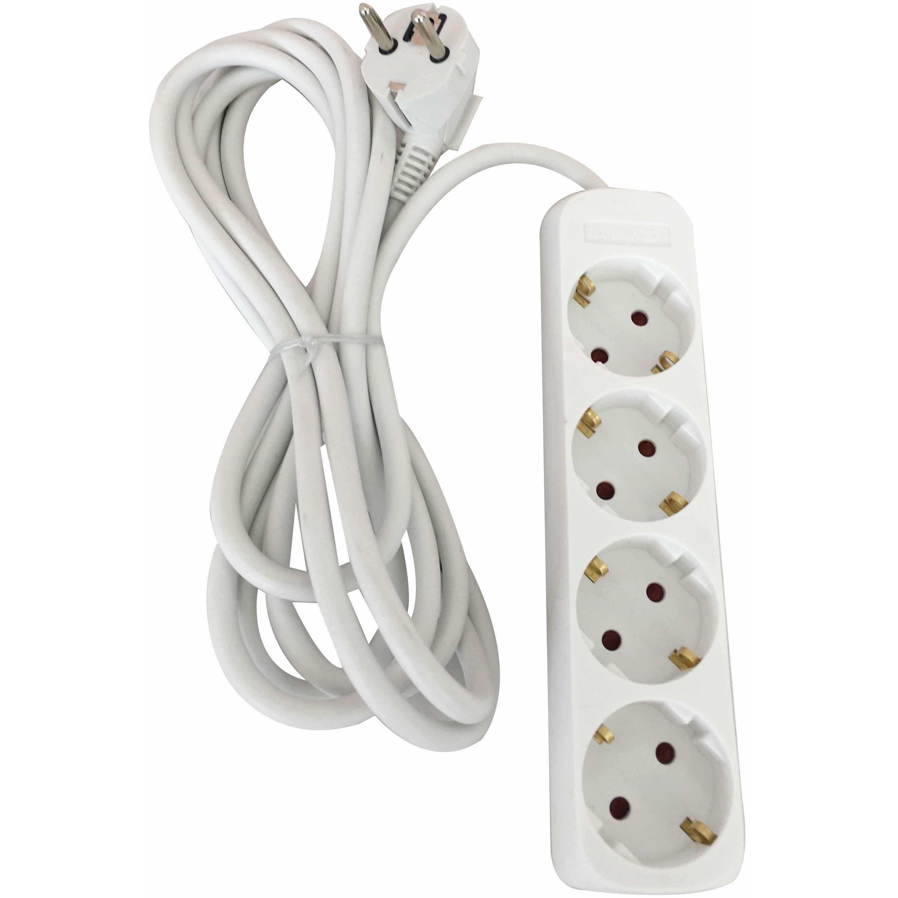 Haaroitusjatkojohto sisäkäyttöön - IP20. Virtajohdon pituus 3 metriä. 4x schuko. Max. Power 3680W 16A/250V. Kaapeli H05VV-F 3G1.5mm2.