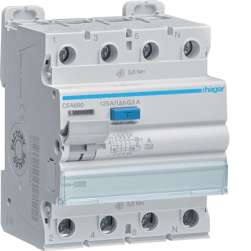 HAGER - Vikavirtasuojakytkin - CFA690 300mA A/4x125A 10kA