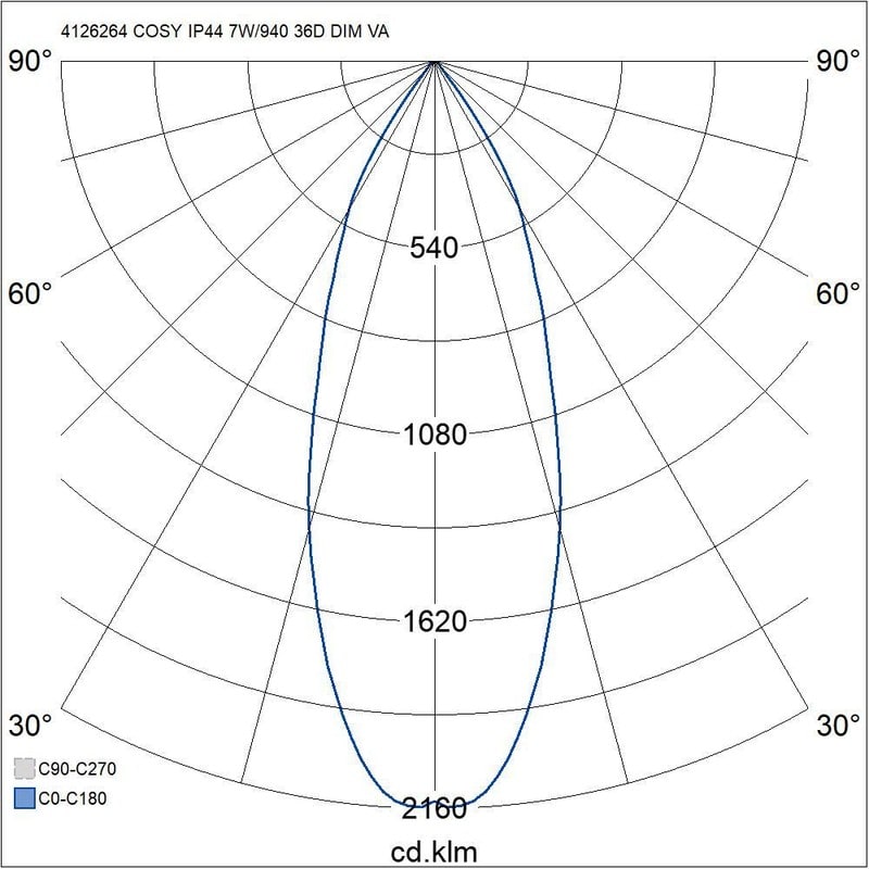 Cosy Fix Alasvalo 7W 4000K 650lm Avauskulma Keskileveä säde 20-40°; Triac nouseva; Triac laskeva; IP44; IK02; SL II; L70B50 90000h; LED kiinteä; CRI>90; SDCM3; Soveltuu läpijohdotukseen; 3x1.5mm²; Kotelo al; Väri val; Suojus Läpinäkyvä muovi