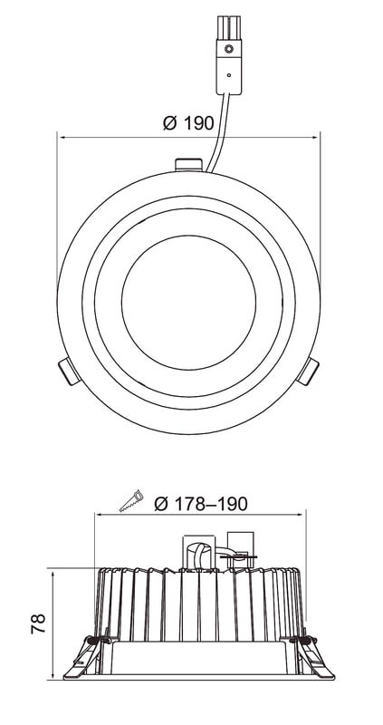 Projektikohtaisesti saatavana värilämpötilat 2700 K ja 5000 K, 240 mm 15 W/1500 lm -mallit sekä Casambi ja 1-10V-versiot.