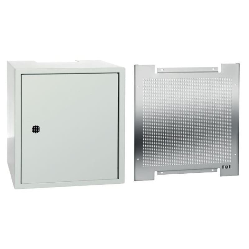 Teleasennuskaappi 400 x 400 x 200mm reiitetyllä asennuspohjalla,lukittava, Televes Televes T589301 on 400x400x200 mm:n lukittava teleasennuskaappi rei'itetyllä asennuspohjalla. Metallirunkoinen asennuskaappi antenni-, data-, puhelin- ja hälytysverkkojen rakentajalle. Sopii erinomaisesti omakotitaloihin sekä yhteisantennijärjestelmien talo- ja alijakamoiden tähtipisteisiin.