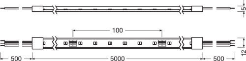 LEDVANCE LED STRIP SUPERIOR TUNABLE WHITE 2000/TW/927-965/5/IP67 24 V:n LED-nauha. Valovirta 8450 lm (900 lm/m @2700K & 1010 lm/m @6500K) ja teho 108 W (21,6 W/m). Katkaisuväli 100 mm. Mitat: 5000 x 10 x 1,2 mm. Keskimääräinen käyttöikä 50 000 tuntia. LEDVANCE SUPERIOR TUNABLE WHITE (TW) LED-nauhojen avulla luot korkealaatuisen valaistuksen säädettävällä värilämpötilalla. Nauhojen molempiin päihin on valmiiksi esiasennettu 50 cm pituiset syöttöjohdot ja nauhoja voidaan leikata 100 mm välein. IP67-luokitellut suojatut SUPERIOR TW -nauhat ovat suolasumun kestäviä (IEC 60068-2-52 mukaisesti) ja UV:n kestäviä (IEC 60068-2-5 mukaisesti).