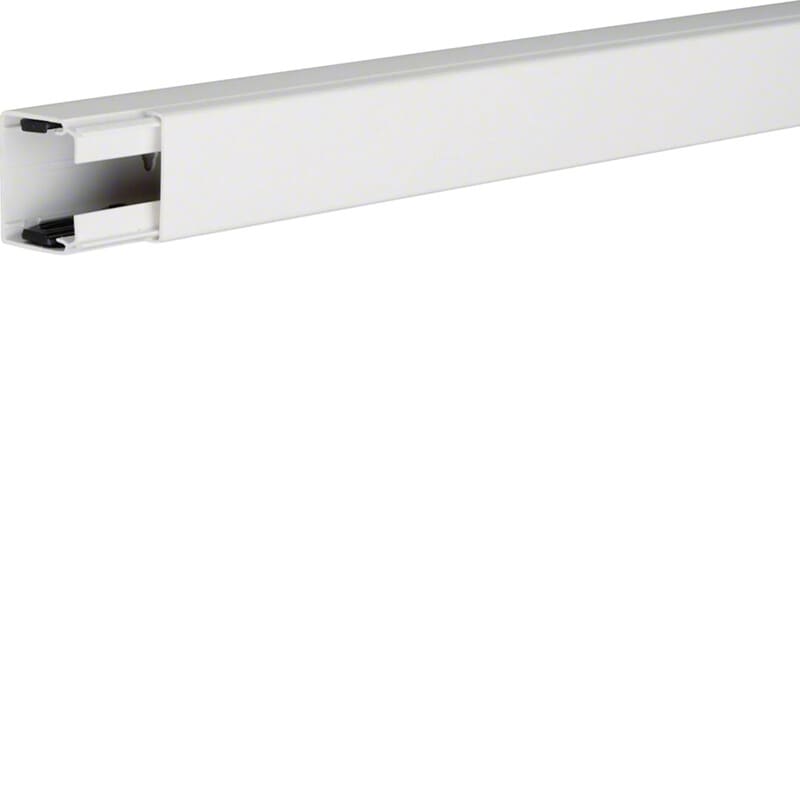 Asennuskanava PVC-muovista LF 40x40mm liikenteenvalkoinen RAL9016. Asennuskanava PVC-muovista, johtoreitiksi kaapeleiden pinta-asennukseen. Valmistettu standardin DIN EN 50085-2-1 mukaisesti. Toimitus sisältää kanavan kannen ja rungon, jossa on kiinnitysreiät 125 mm välein ja jatkokappaleet yksinasentamisen helpottamiseksi. Kanavaan on saatavilla tehdasvalmisteiset muoto-osat sisäkulma, ulkokulma, päätykappale, tasokulma ja T-kappale.