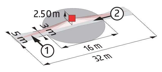 Tunnistusalueen maksimipituus - 32 m