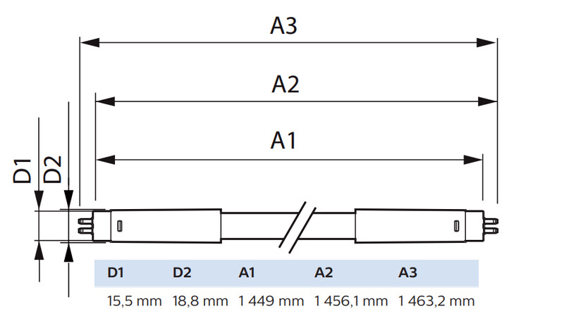 - Lampun pituus: 1500 mm
