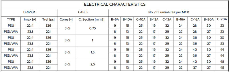 Enimmäismäärä valaisimia, johdonsuojakatkaisija C16: