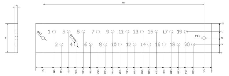 OUNEVA - PE-kisko - 10x100x600, 20/11 tinattu