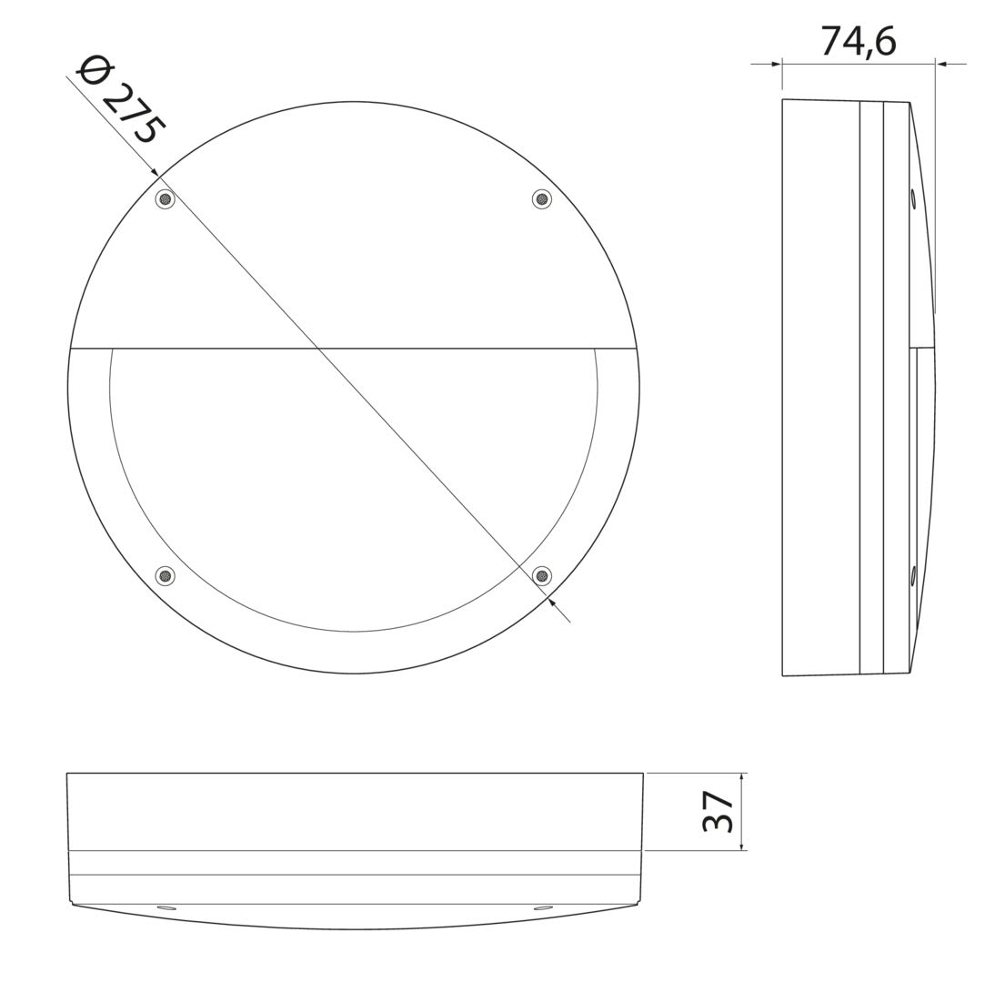 Halo Eye Seinä/kattovalaisin ulko 7W/8W/12W/14W; 350lm/450lm/650lm/750lm; 3000K/4000K; Ei him; IP65; IK10; SL I; L70B50 75000h; LED kiinteä; CRI>80; SDCM3; Soveltuu läpijohdotukseen; 3x2.5mm²; Kotelo al; Väri ant; Suojus Opaalimuovi; C16 maks. 119