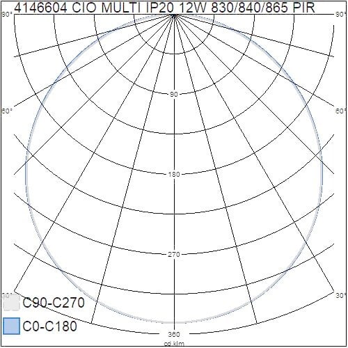 Cio Multi Alasvalo 12W 3000K/4000K/6500K 1000lm Avauskulma Erittäinleveä säde >80°; Ei him; IP20; IK03; SL II; L70B50 50000h; LED kiinteä;CRI>80; Päättyvä; 2x0.75mm²; Kotelo Muovi; Väri val; Suojus Opaalimuovi;Liiketunnistin; C16 maks. 61