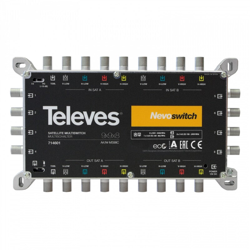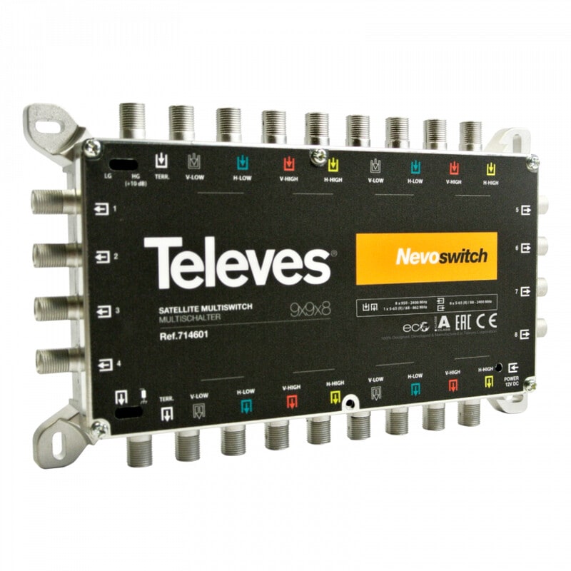 Nevoswitch T714601 on ketjutettava suorajakelukytkin, joka on varustettu 9 tulolla (yksi maanpäällinen ja kahden satelliitin 4 polaarisuutta) ja 8 lähdöllä. Laitetta voidaan käyttää päätelaitteena (tähtiverkossa) tai kaskadina.
